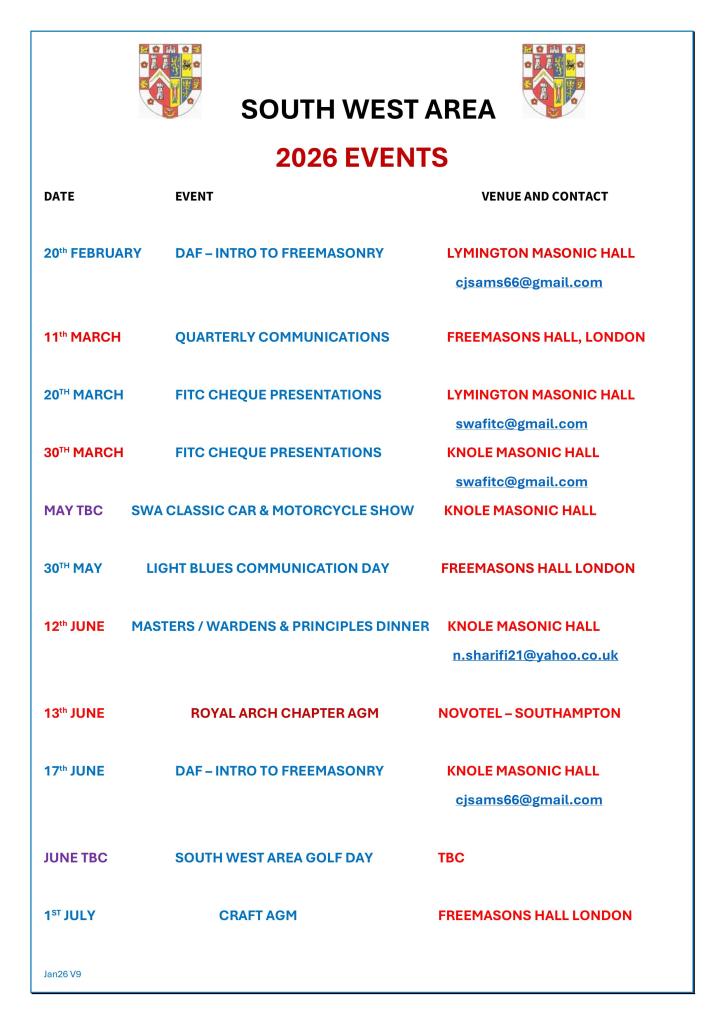Upcoming Events in the South West Area